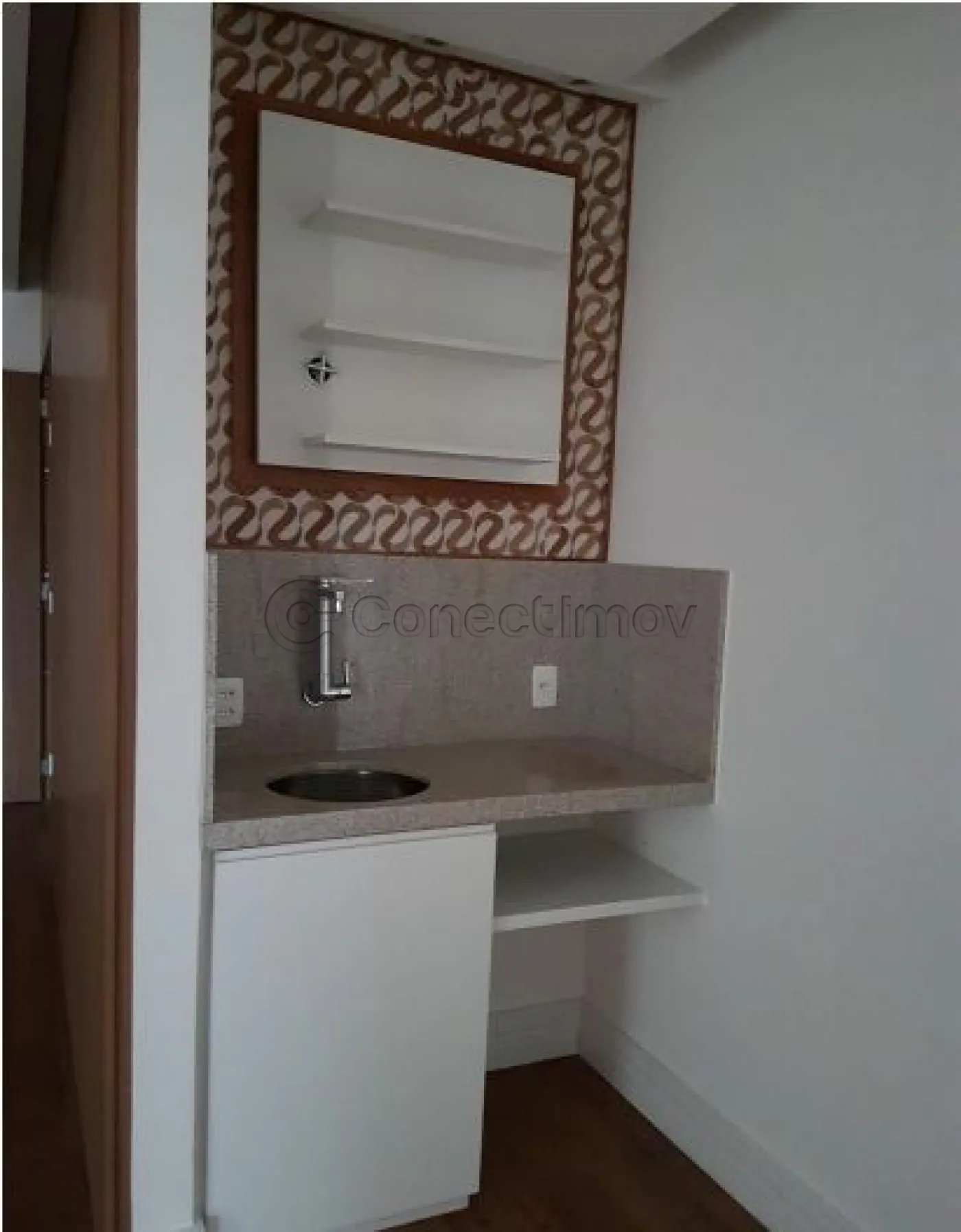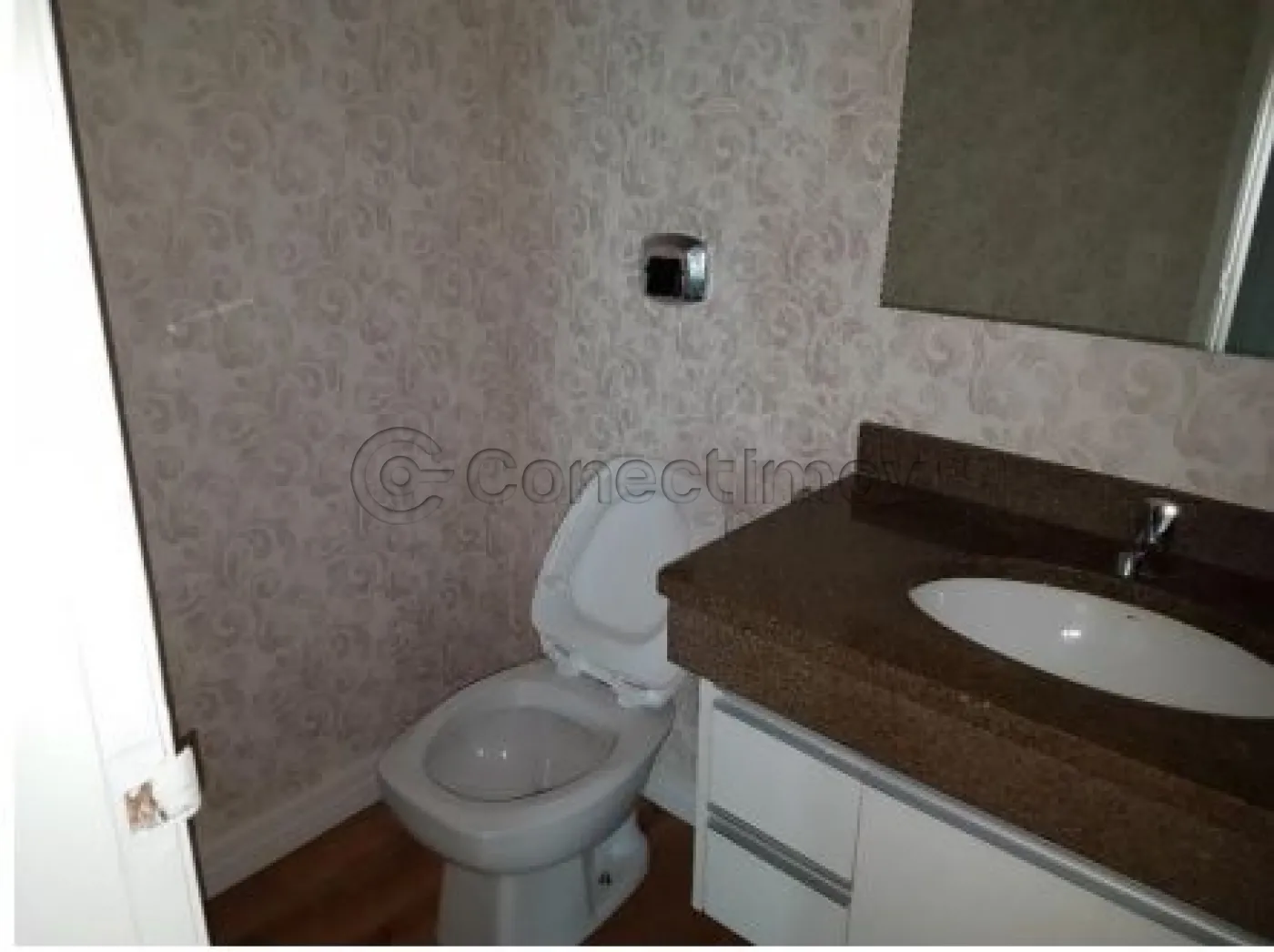 Sanitários/Copa Piso com carpete de madeira e carpete e paredes revestidas com pintura látex, forro de gesso.
