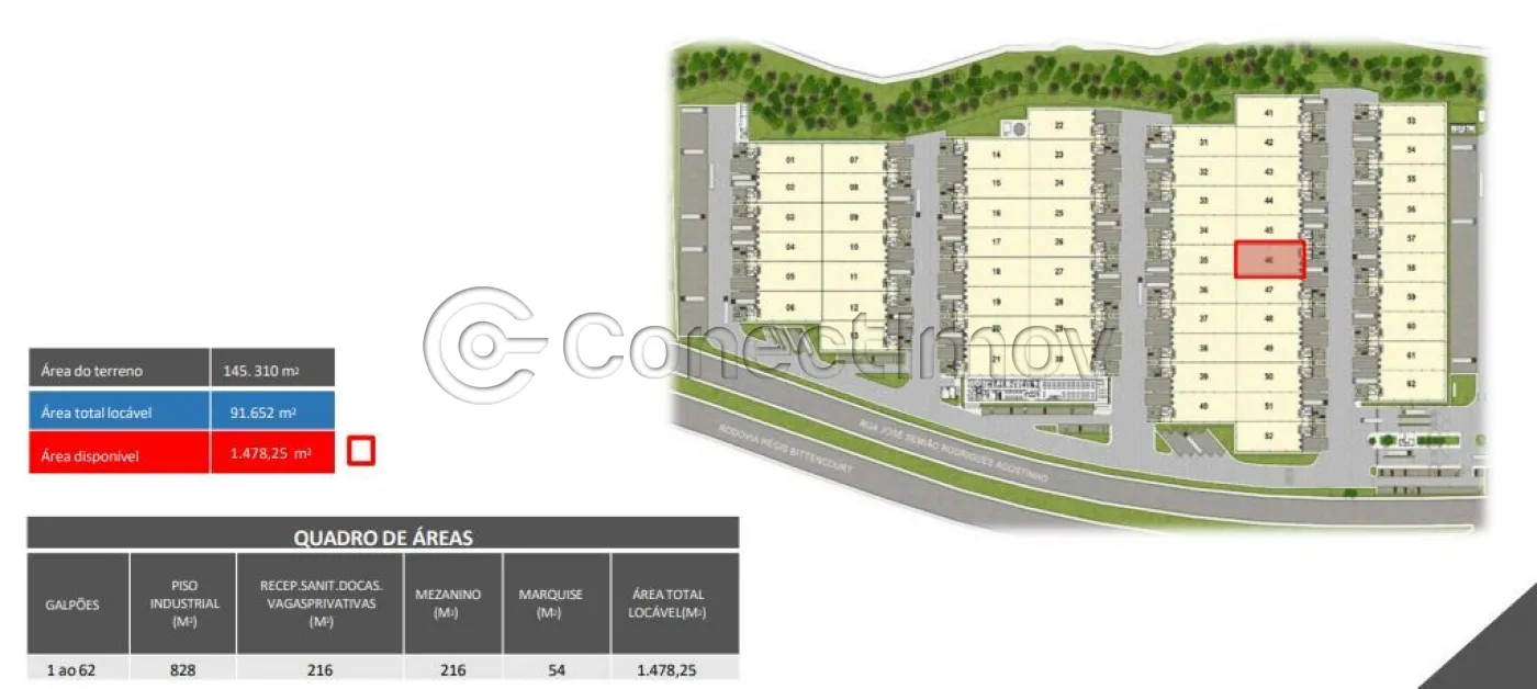 - **Estrutura Completa**: Galpão amplo com layout versátil, adequado para diferentes tipos de atividades comerciais e industriais.