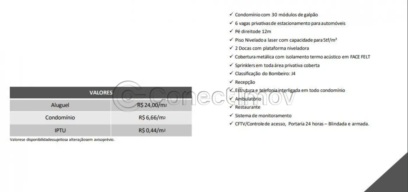 - Estrutura Completa: Pé direito alto, que proporciona maior flexibilidade para armazenamento e operações industriais.