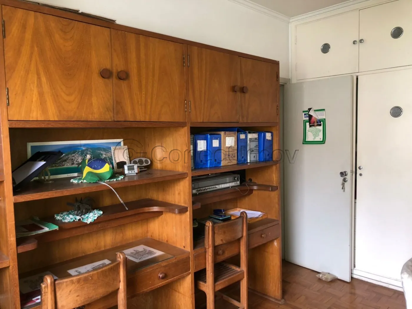 Armários no banheiro, cozinha, dormitórios e escritório.