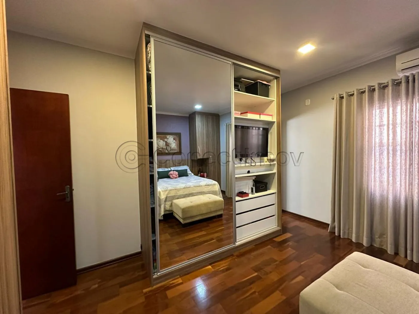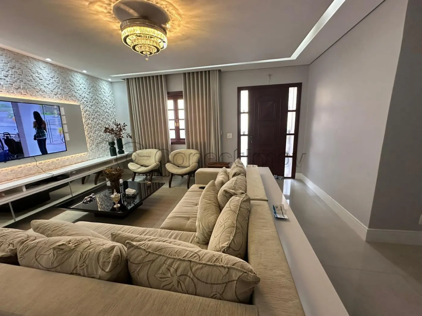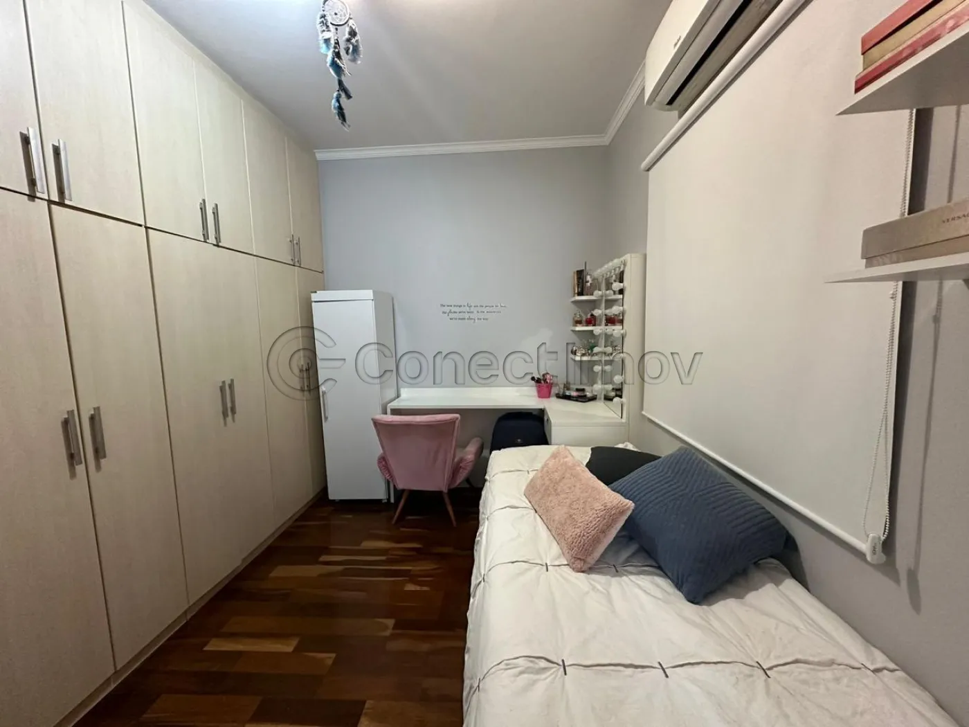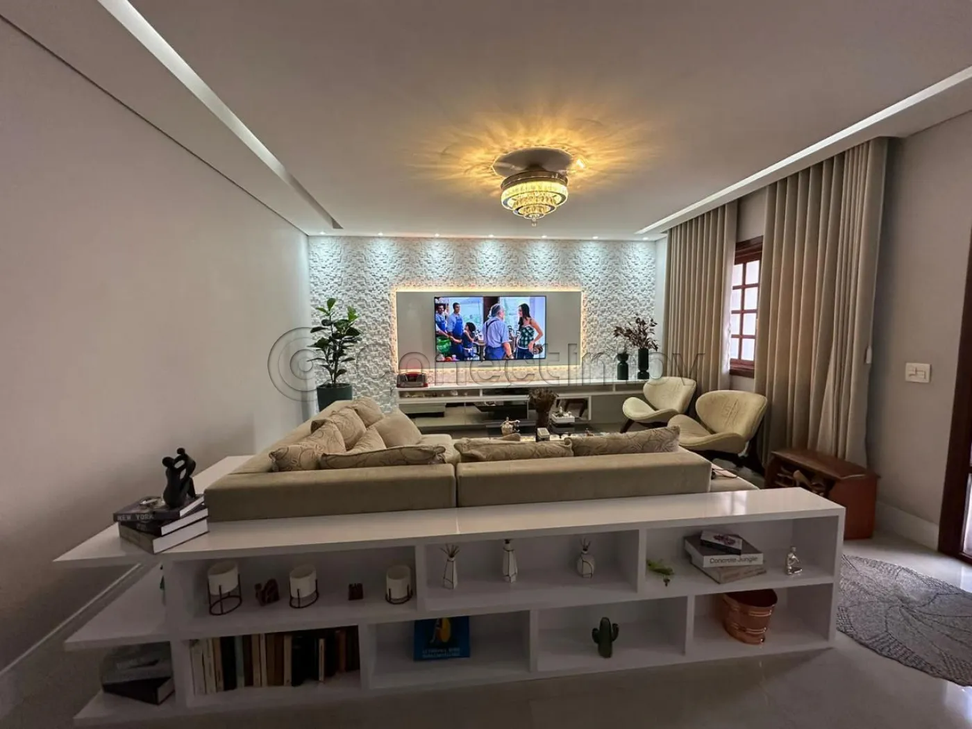 Com 4 dormitórios com ar condicionado em todos os quartos, sendo 3 suítes com ármarios planejados, escritorio planejado, sala de estar, sala de TV com planejado, sala de jantar, barzinho planejado, cozinha ármarios planejados, lavanderia ármarios planejados, banheiro social, vagas de garagem, 400 m² útil, Com área Gourmet ármarios planejados churrasqueira, piscina, sauna, banheiro externo, sacada, quintal, segurança 24h.