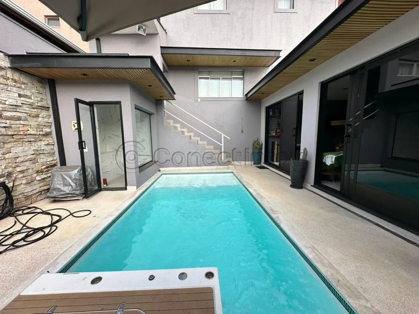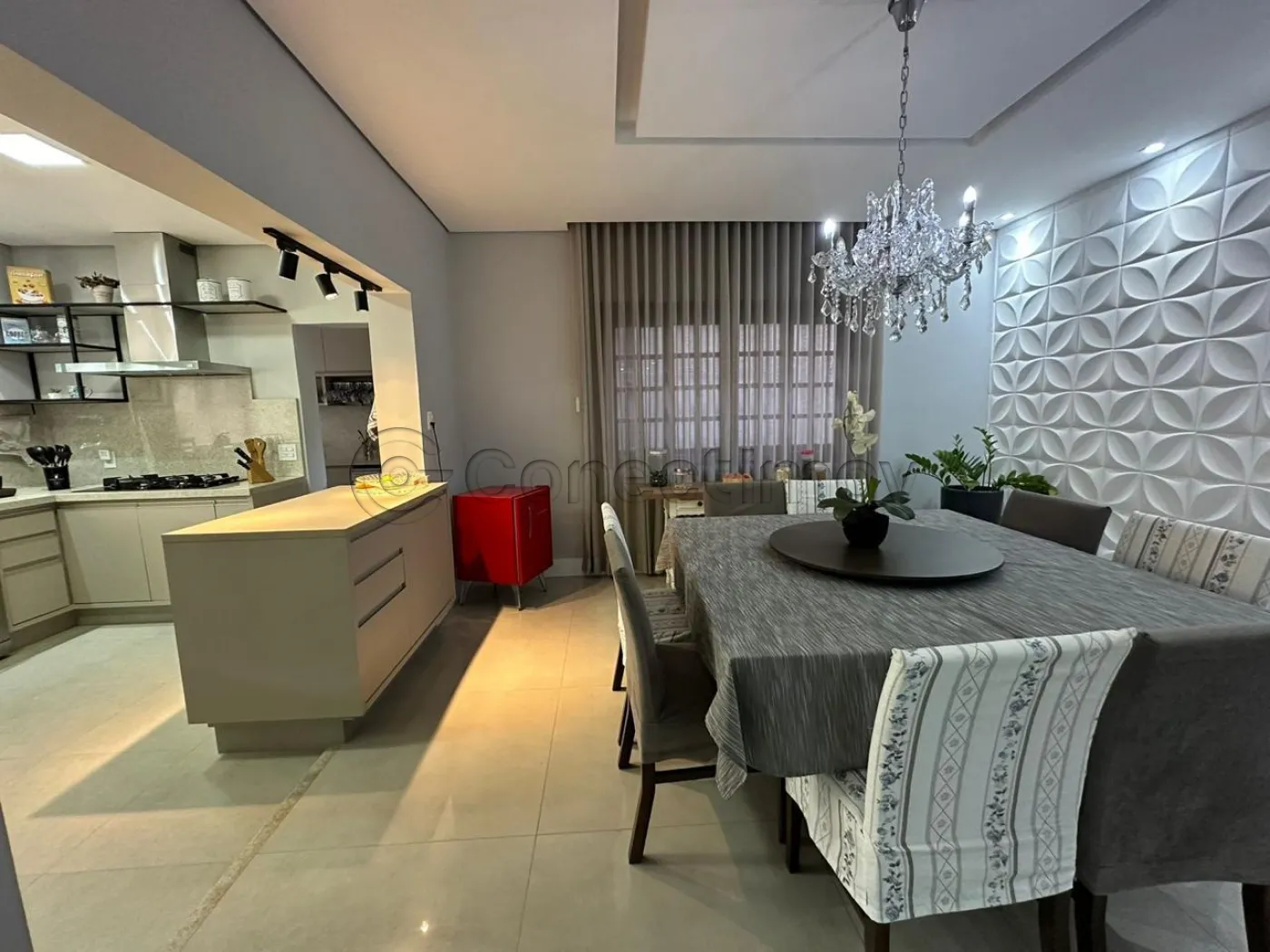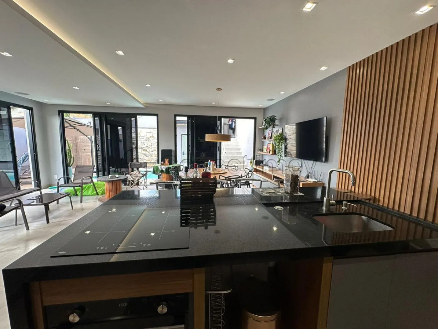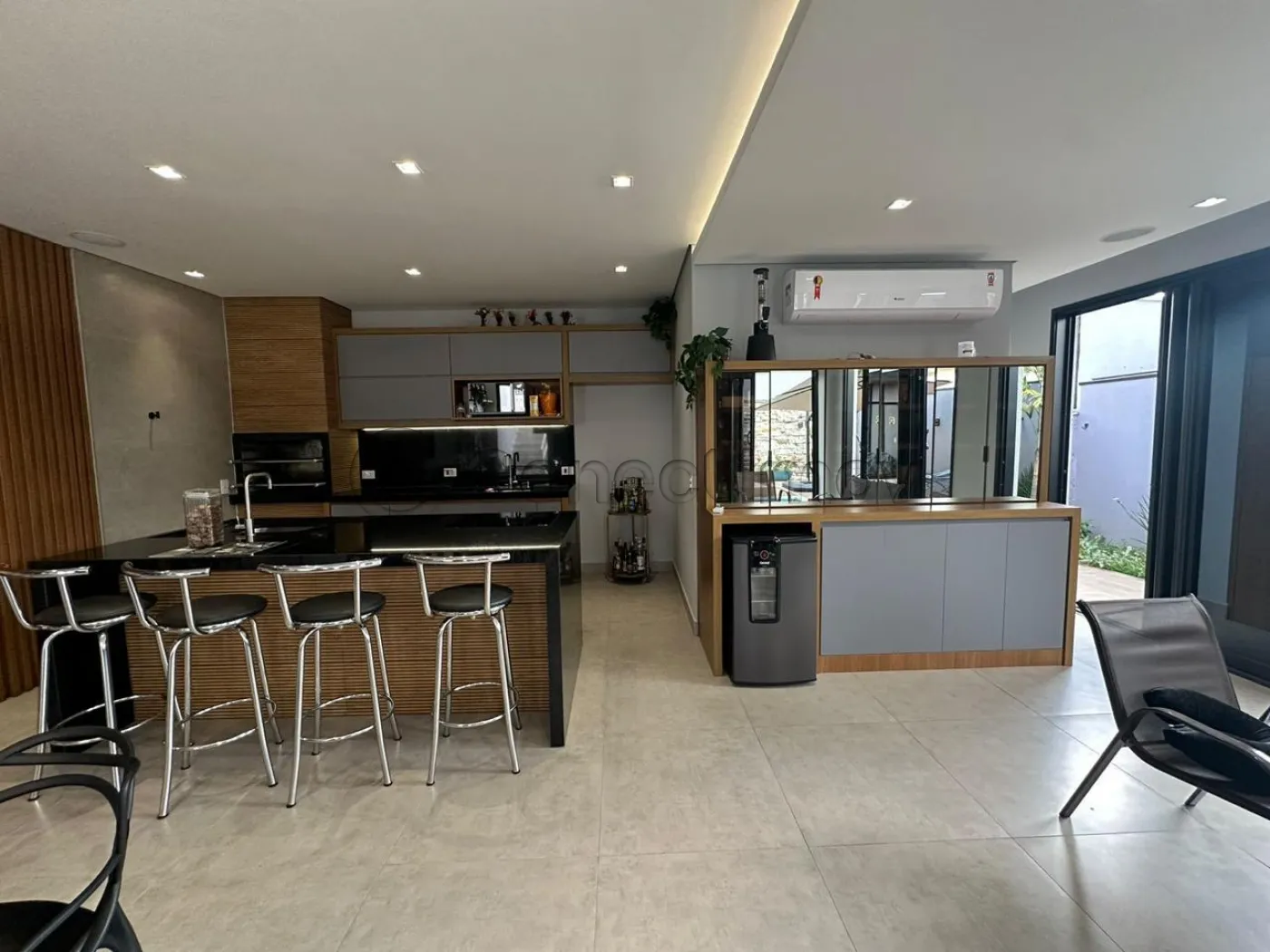 Com 4 dormitórios com ar condicionado em todos os quartos, sendo 3 suítes com ármarios planejados, escritorio planejado, sala de estar, sala de TV com planejado, sala de jantar, barzinho planejado, cozinha ármarios planejados, lavanderia ármarios planejados, banheiro social, vagas de garagem, 400 m² útil, Com área Gourmet ármarios planejados churrasqueira, piscina, sauna, banheiro externo, sacada, quintal, segurança 24h.