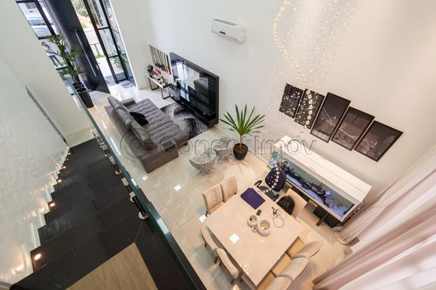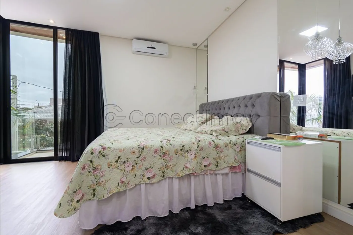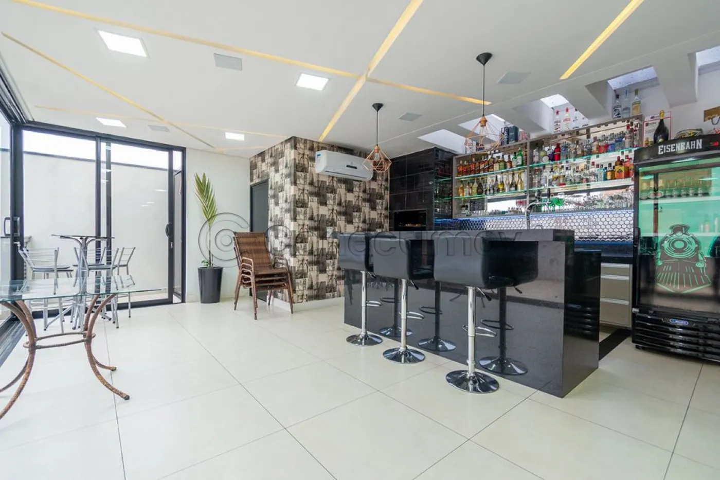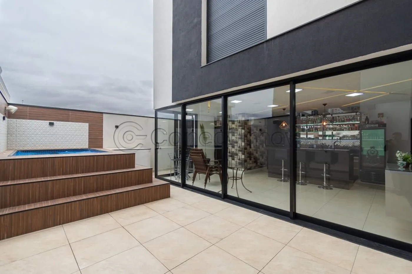 Sobrado localizado em condomínio de Hortolândia/SP! O imóvel oferece porta da entrada principal de modelo pivotante, com 6m de altura e inteiriça e a sala de estar é integrada com a sala de jantar com pé direito duplo, e tem um lustre de cristal com 4,5m². A cozinha é decorada com pastilhas laminadas, com armários de alta qualidade, uma ilha com o cooktop e armários e uma despensa. As três suítes têm os banheiros com cromoterapia, ar condicionado e janelas automáticas. Área gourmet equipada com chopeira e decorada com luz de Led, dois banheiros e uma hidromassagem com energia solar. 6 banheiros no total + 1 lavabo.
