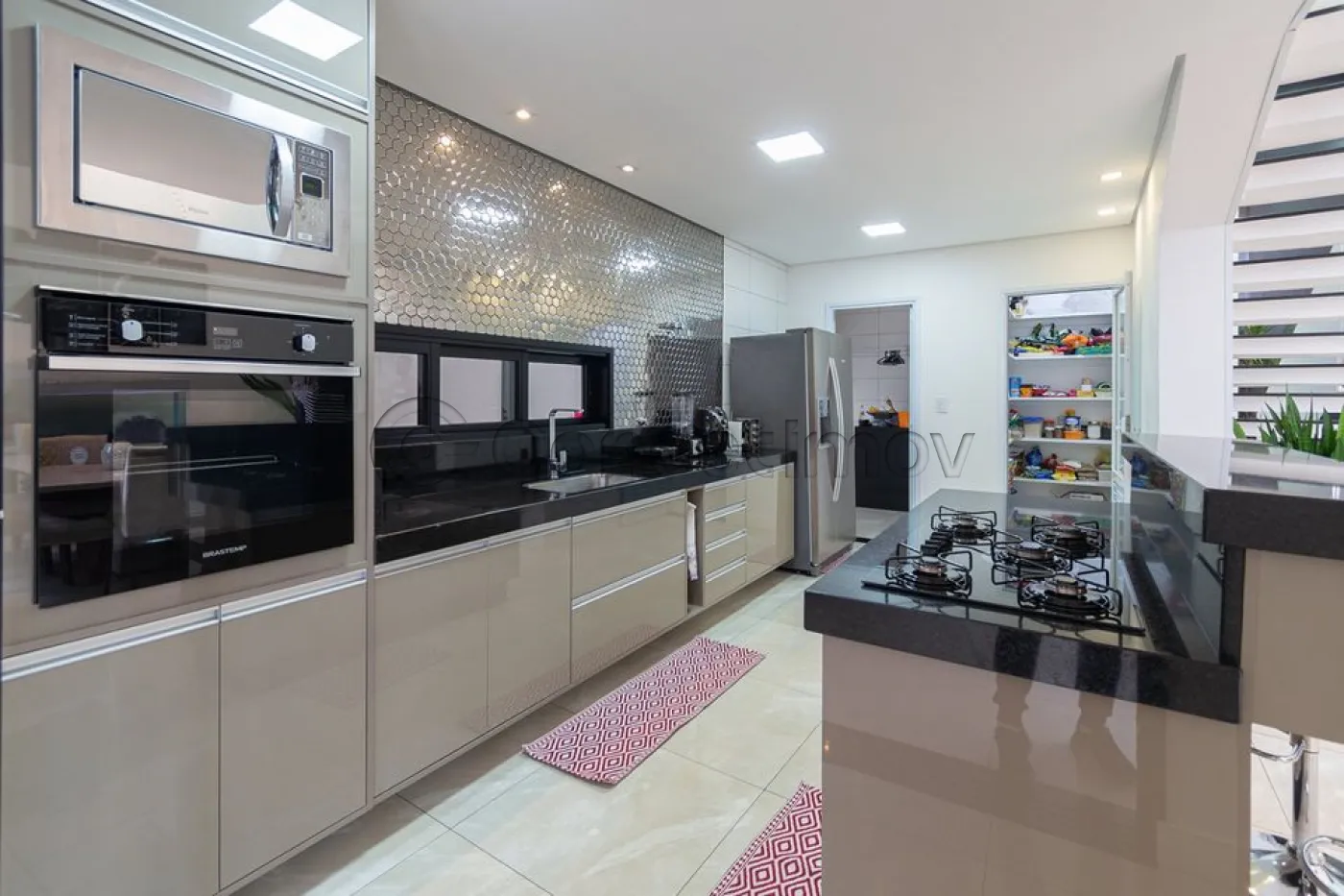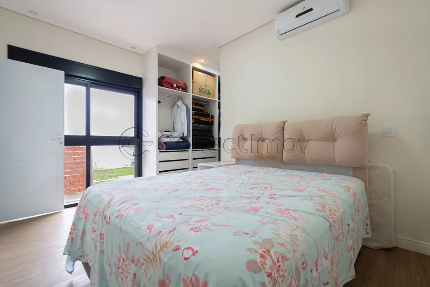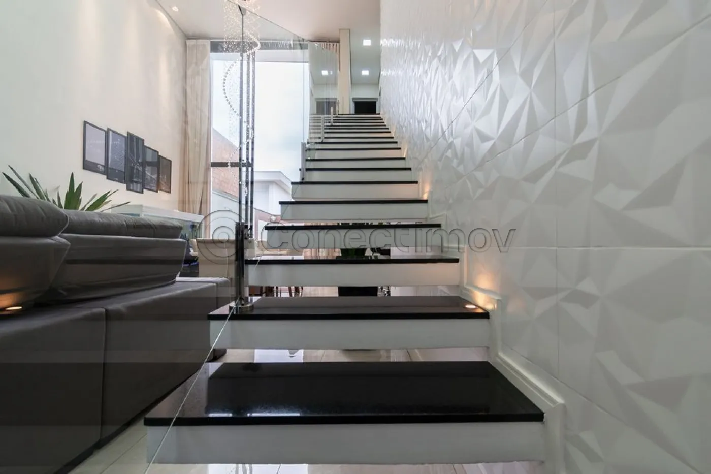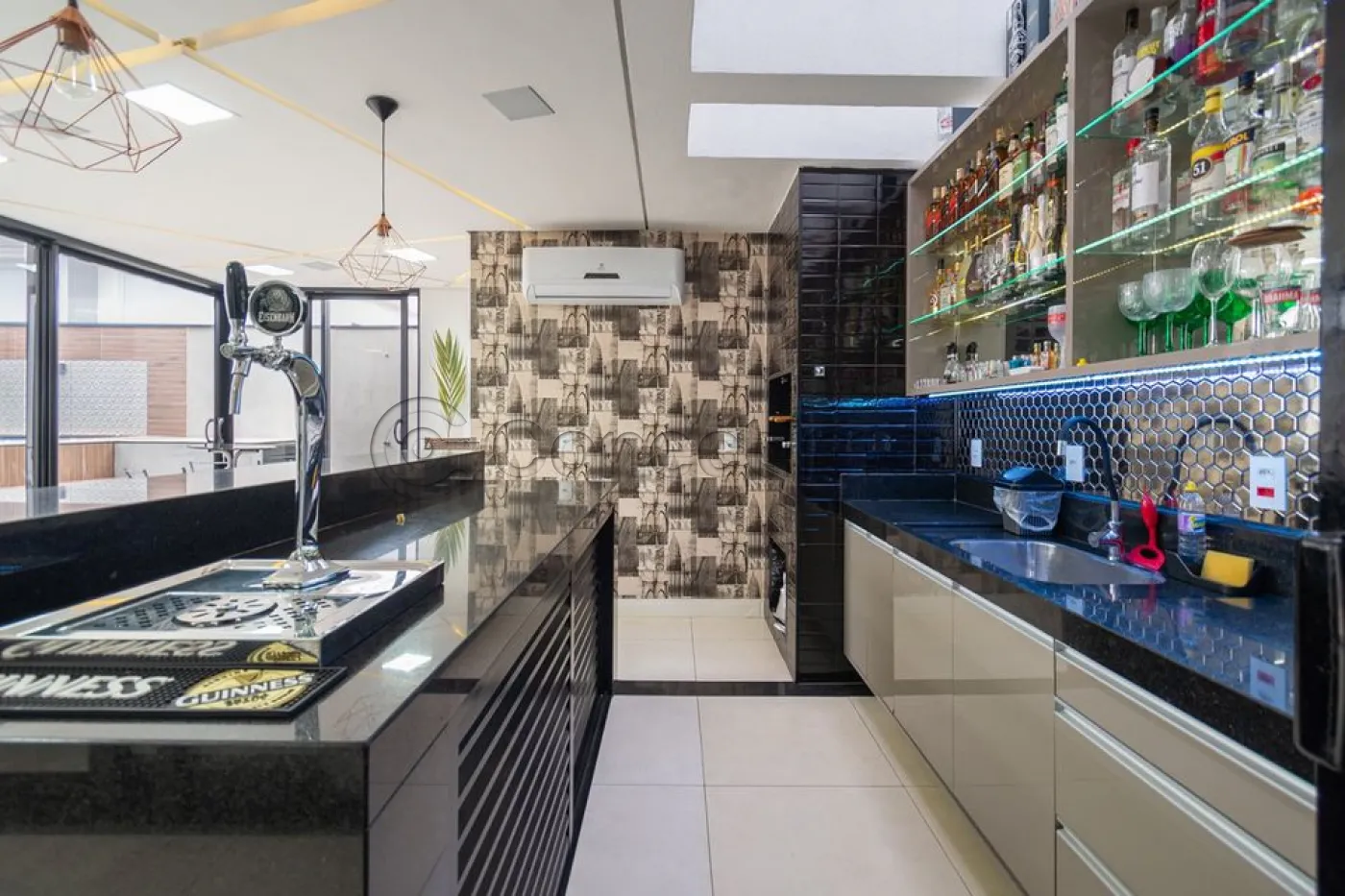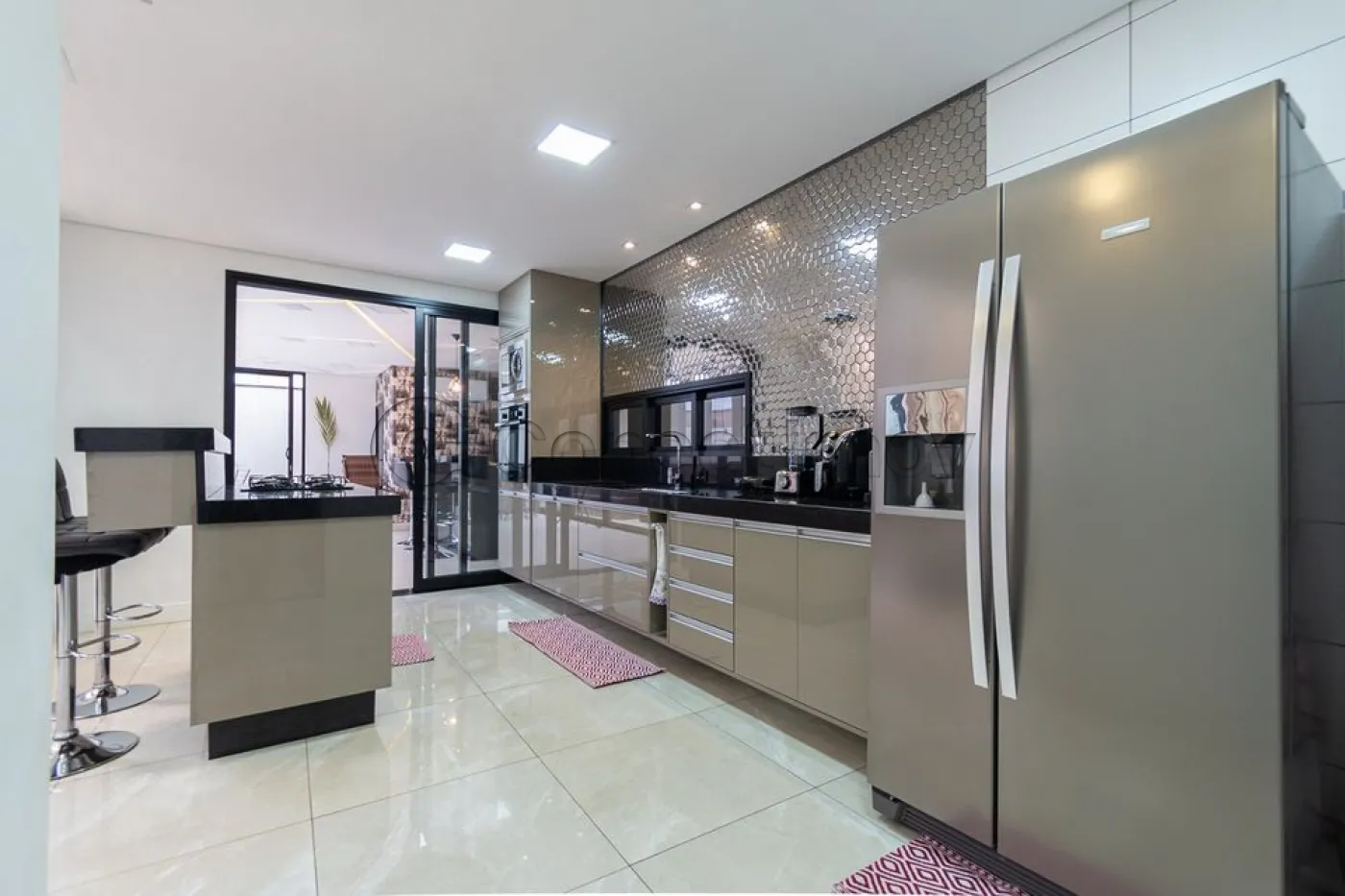 Sobrado localizado em condomínio de Hortolândia/SP! O imóvel oferece porta da entrada principal de modelo pivotante, com 6m de altura e inteiriça e a sala de estar é integrada com a sala de jantar com pé direito duplo, e tem um lustre de cristal com 4,5m². A cozinha é decorada com pastilhas laminadas, com armários de alta qualidade, uma ilha com o cooktop e armários e uma despensa. As três suítes têm os banheiros com cromoterapia, ar condicionado e janelas automáticas. Área gourmet equipada com chopeira e decorada com luz de Led, dois banheiros e uma hidromassagem com energia solar. 6 banheiros no total + 1 lavabo.
