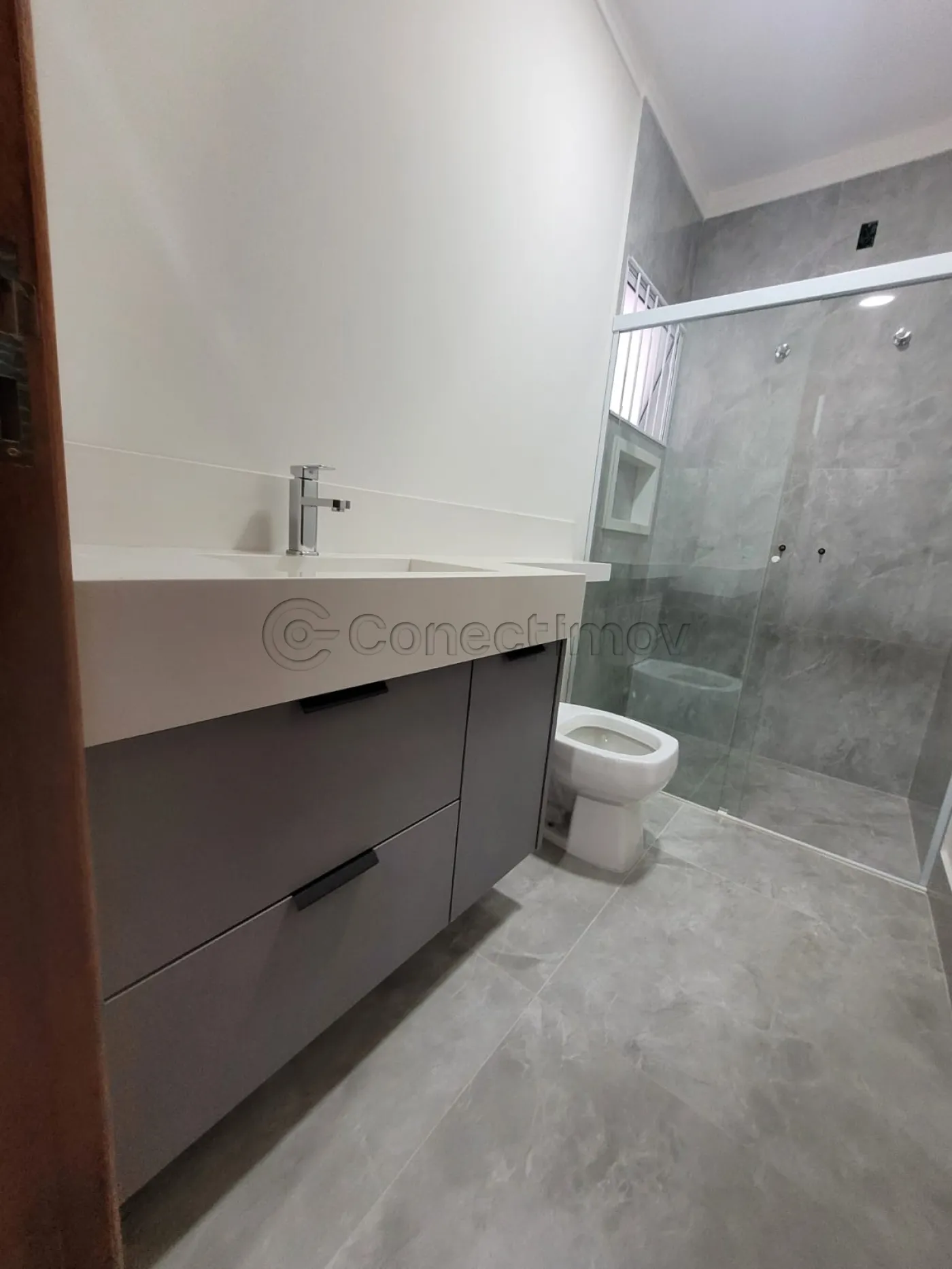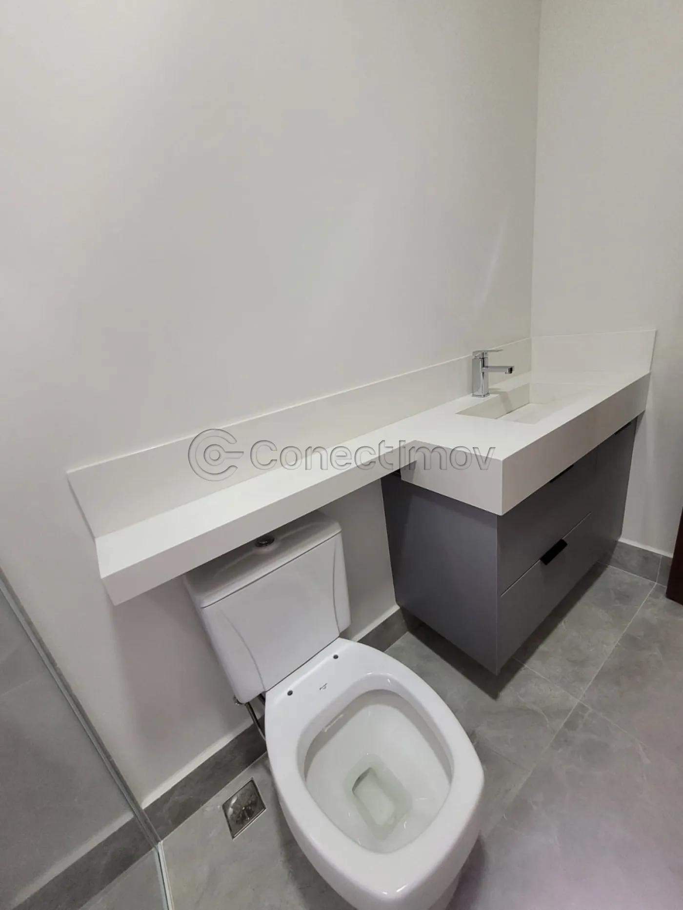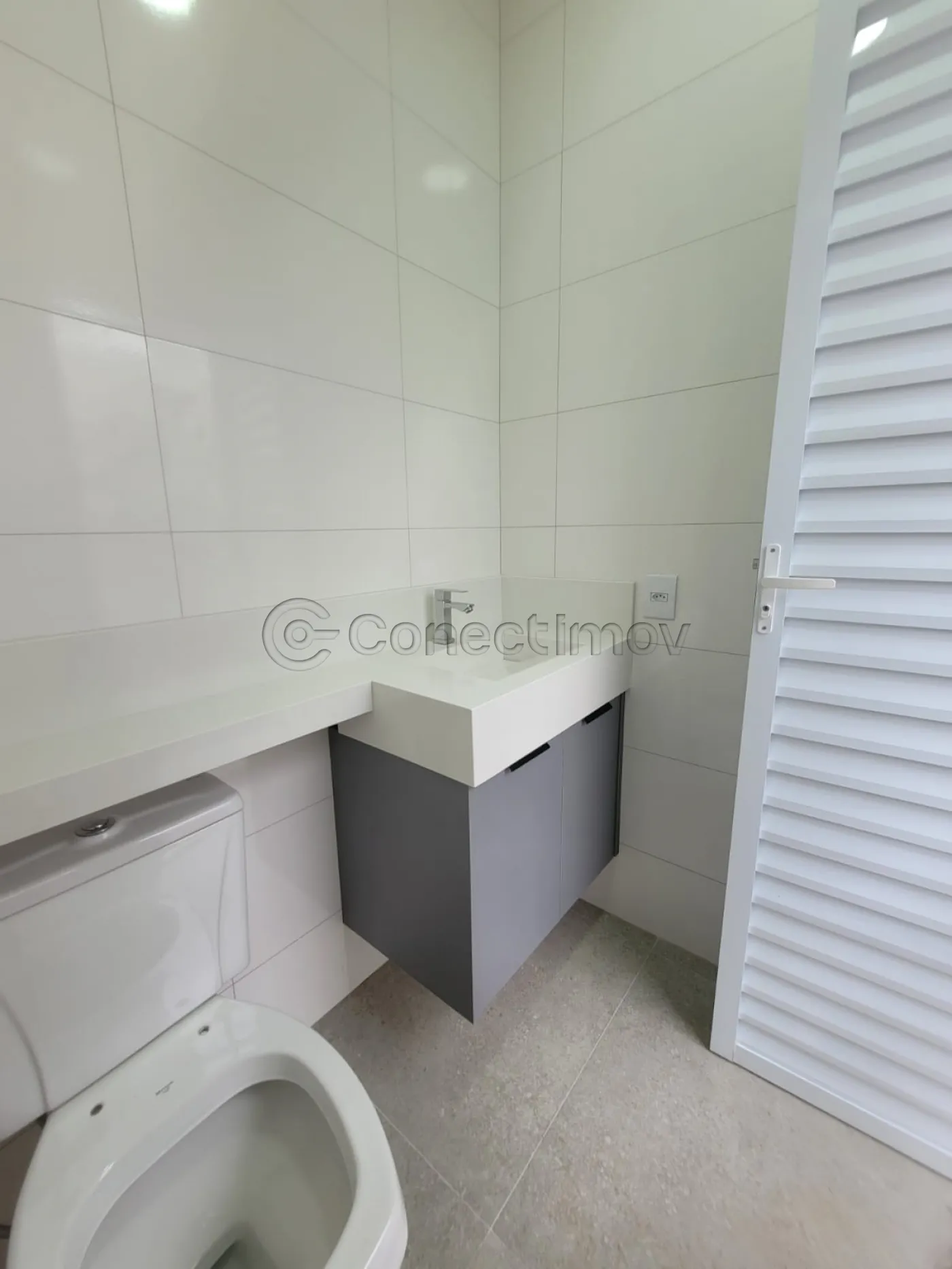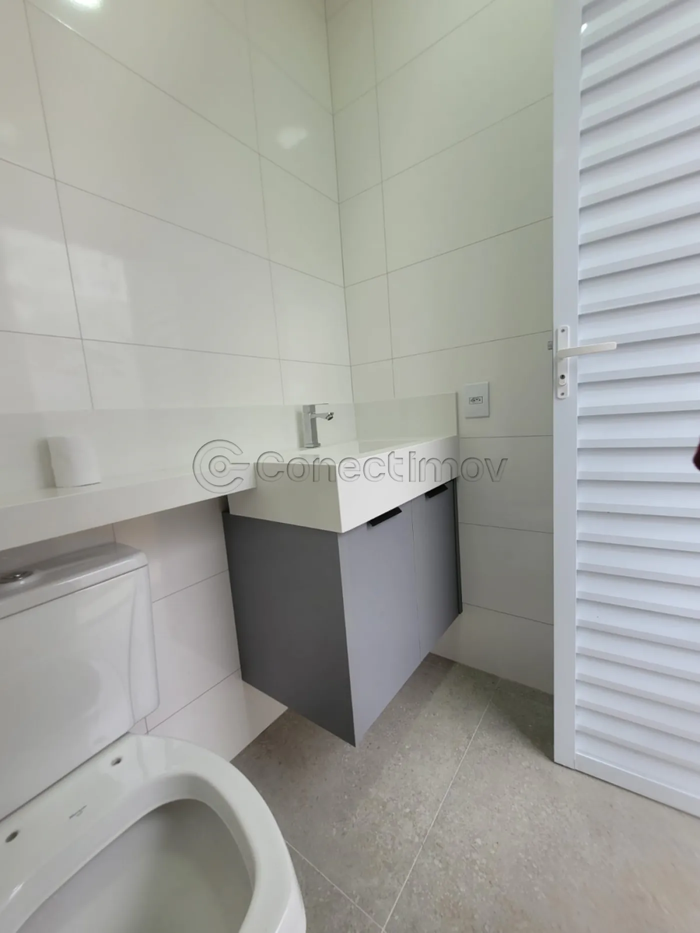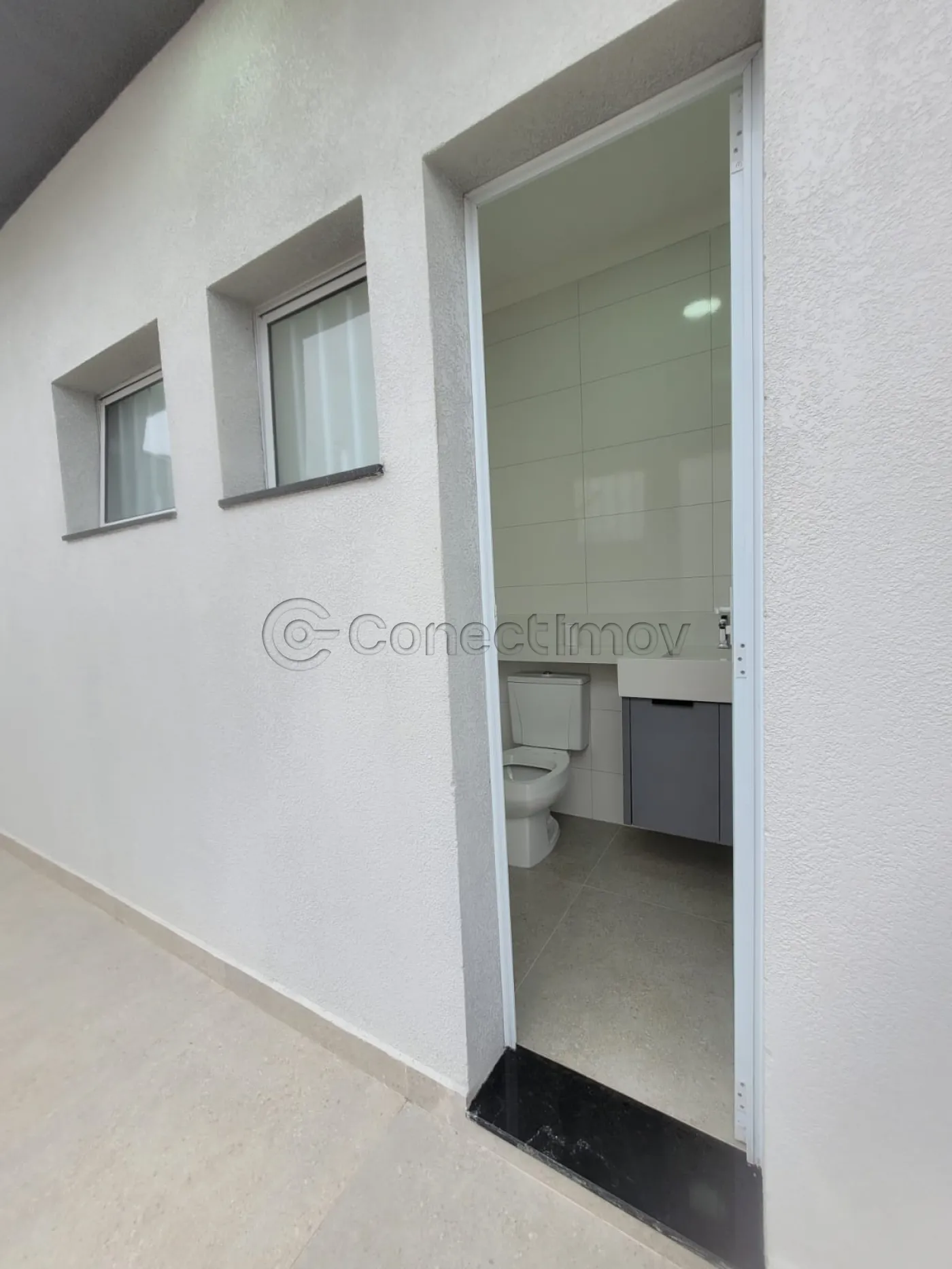 - Um banheiro social interno e um lavabo na área externa