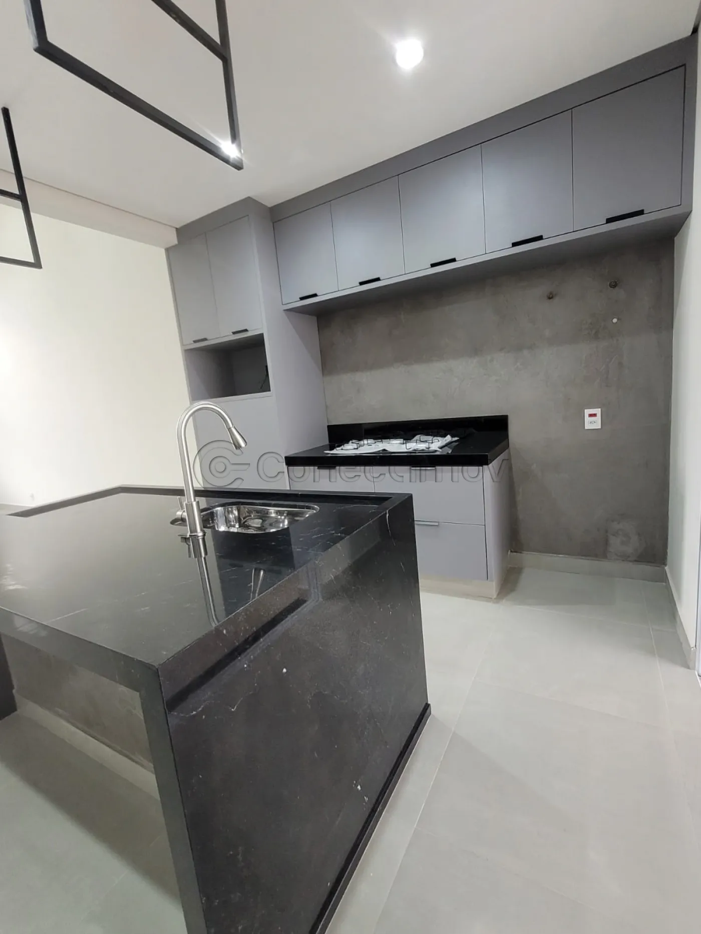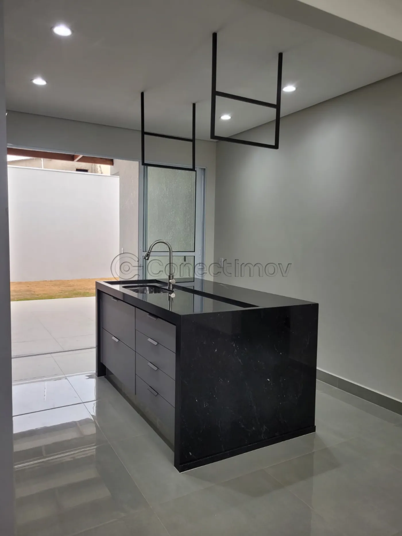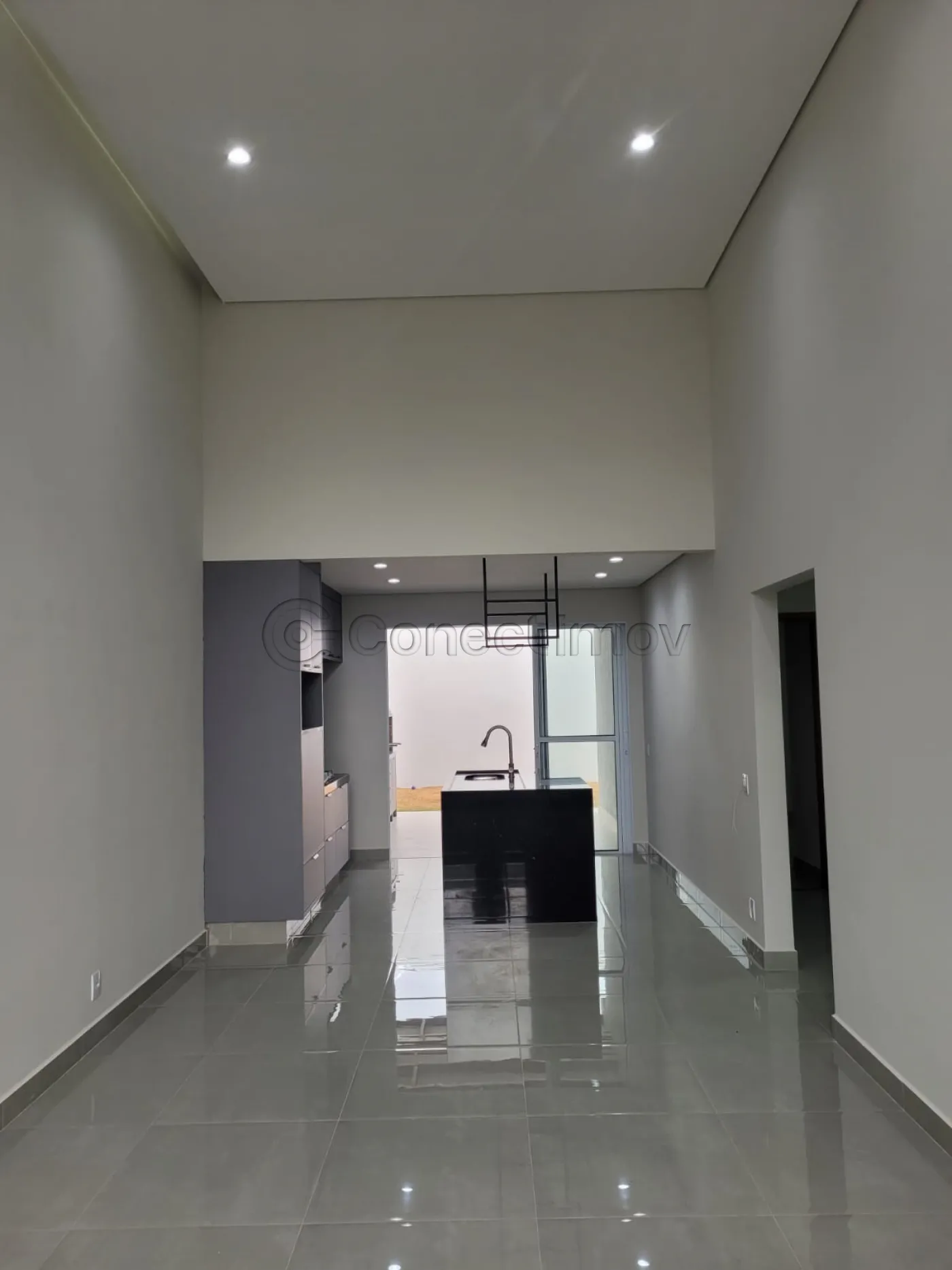 - Sala com pé direito duplo, conjugada com cozinha e área gourmet