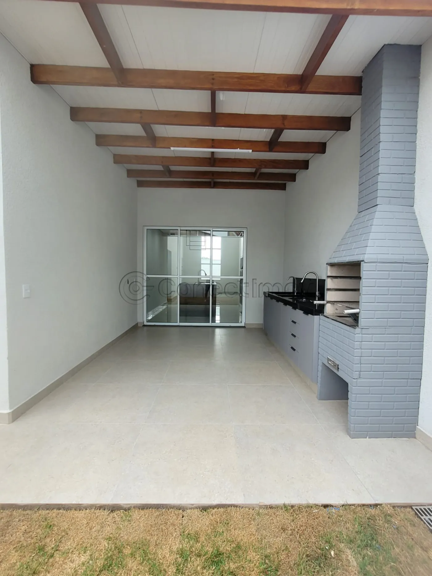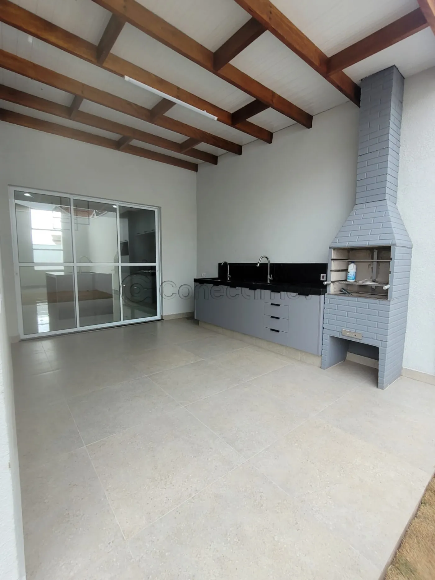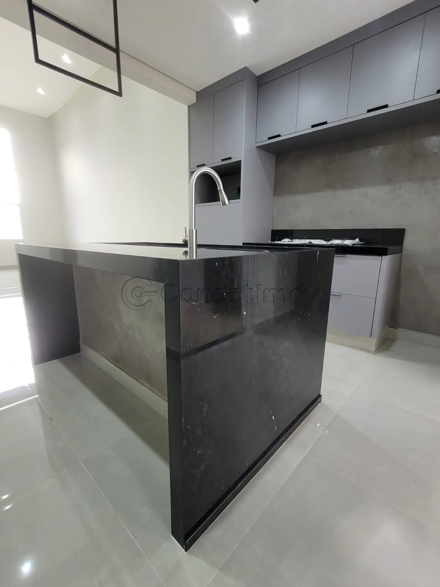 - Sala com pé direito duplo, conjugada com cozinha e área gourmet
