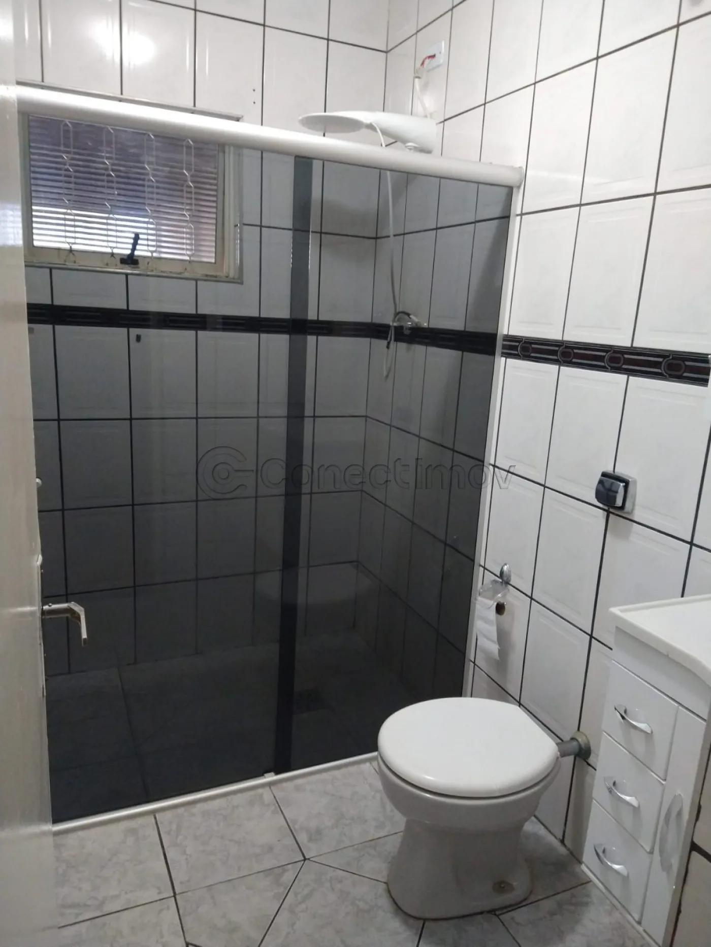 - Um banheiro social com box em blindex