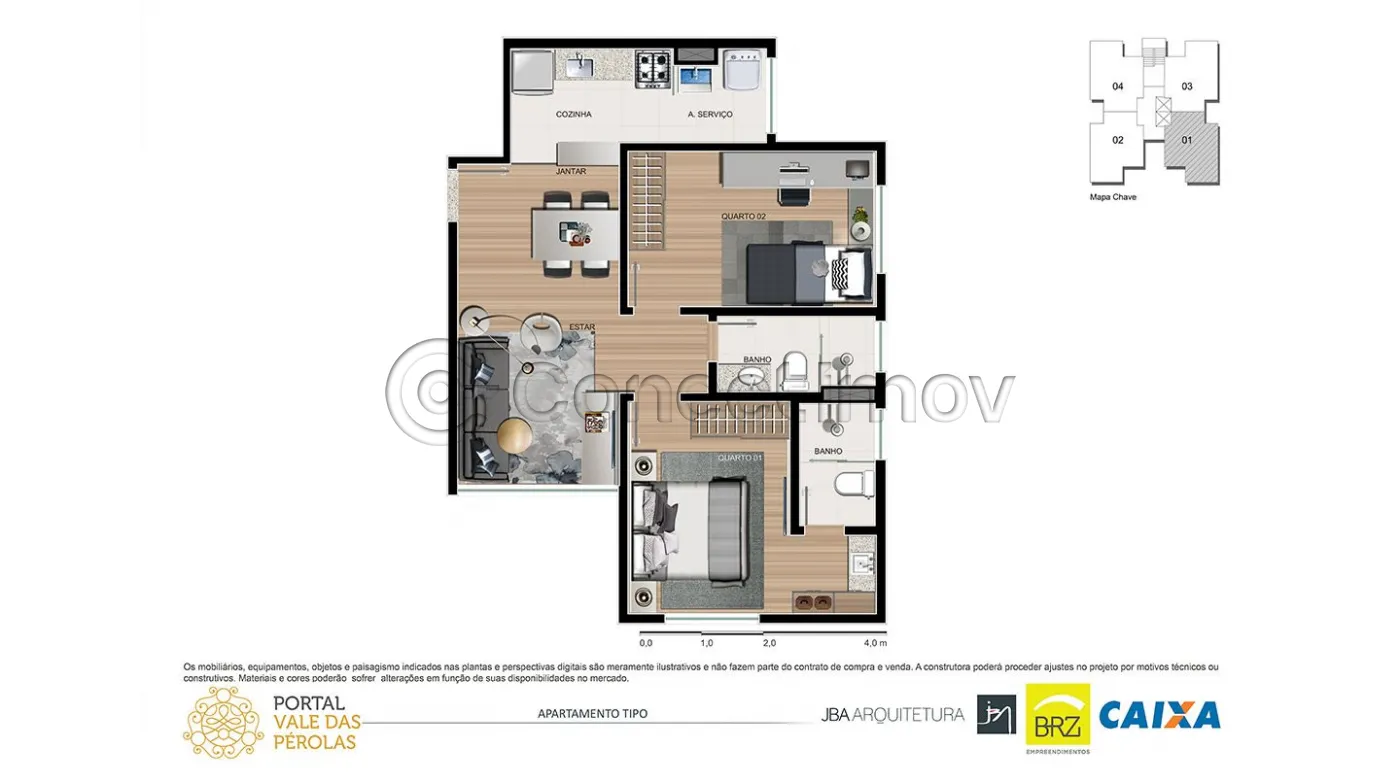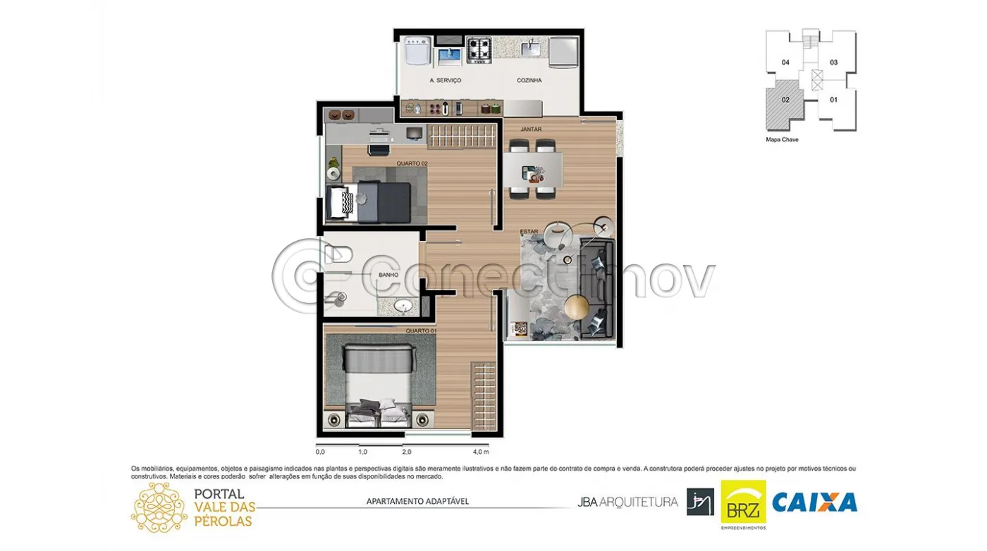 - 02 dormitórios sendo 1 suite