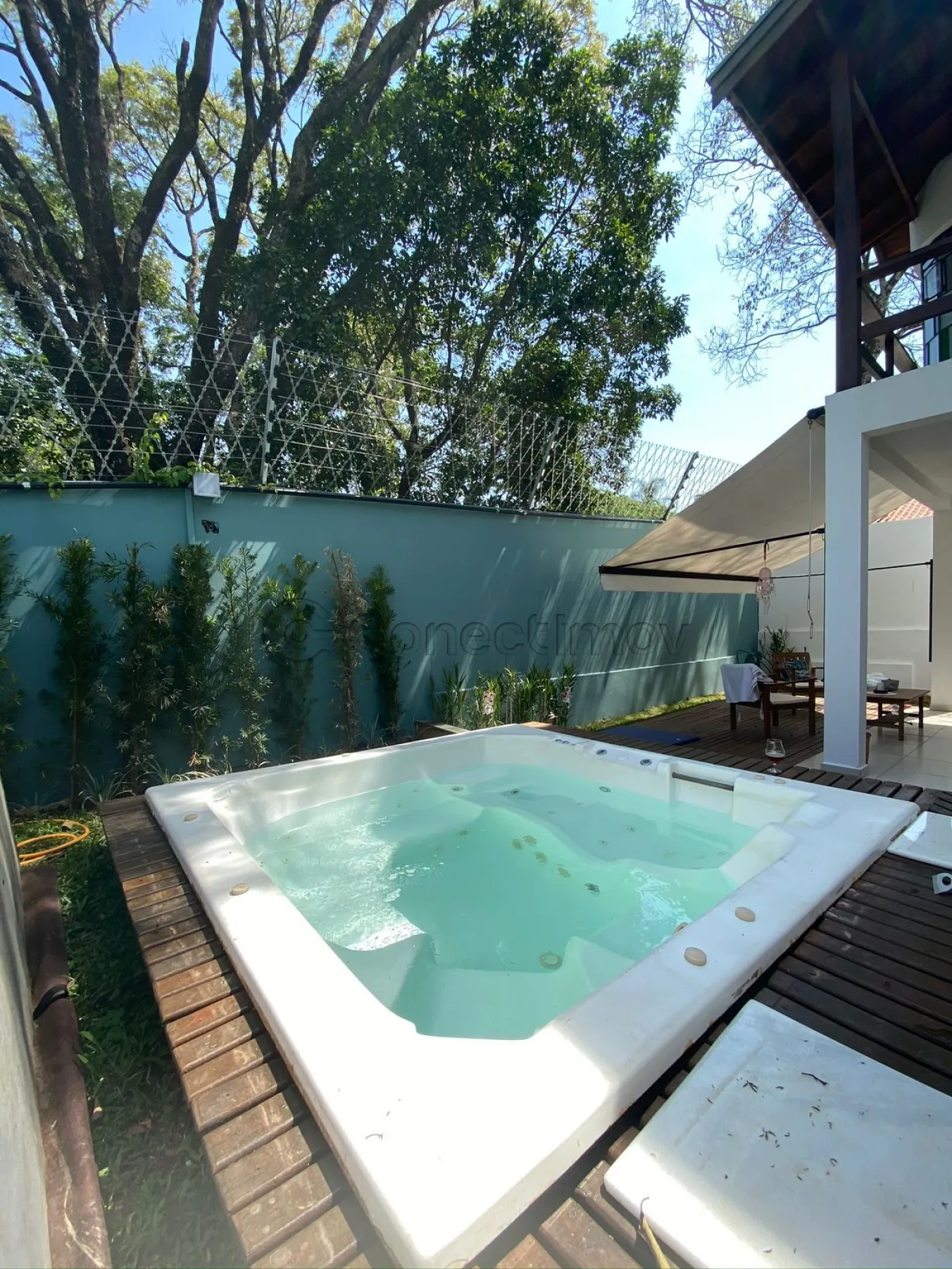 - Quatro suítes, sendo três no piso superior e uma no térreo, banheira em duas suíte